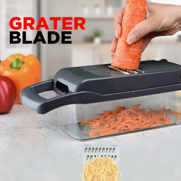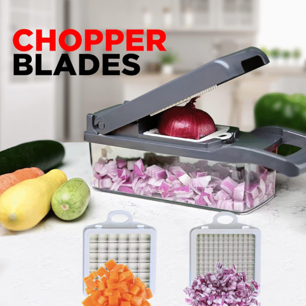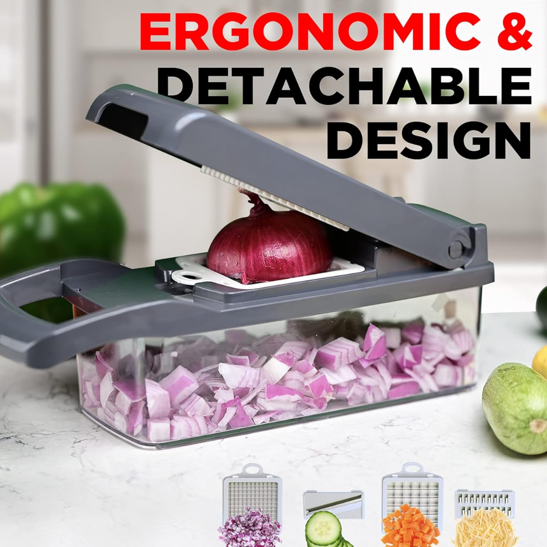 • 12-in-1 multi-functional kitchen tool for chopping, slicing, grating, and shredding