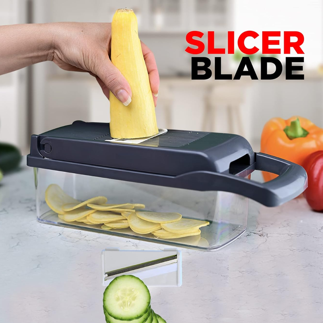 12-in-1 Multi-Functional Vegetable Chopper, Slicer & Dicer with Stainless Steel Blades and Storage Container