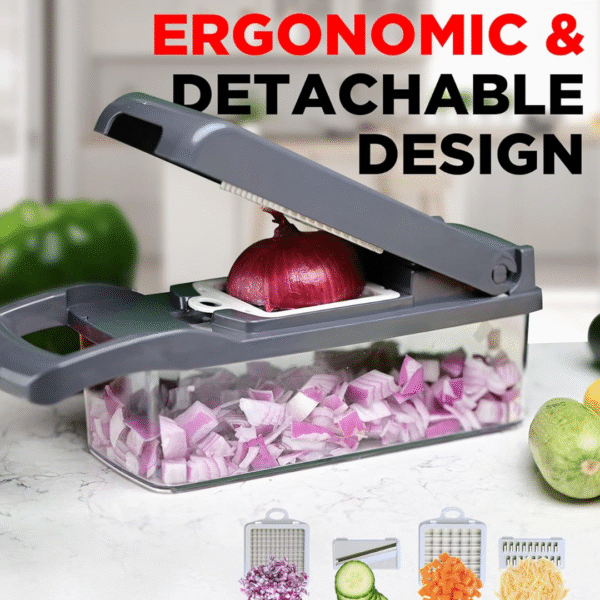 The 12-in-1 Multi-Functional Vegetable Chopper from Vinzesta transforms your kitchen routine with convenience, speed, and precision. Designed for safety and versatility, it replaces multiple tools — making meal prep cleaner, faster, and more enjoyable.