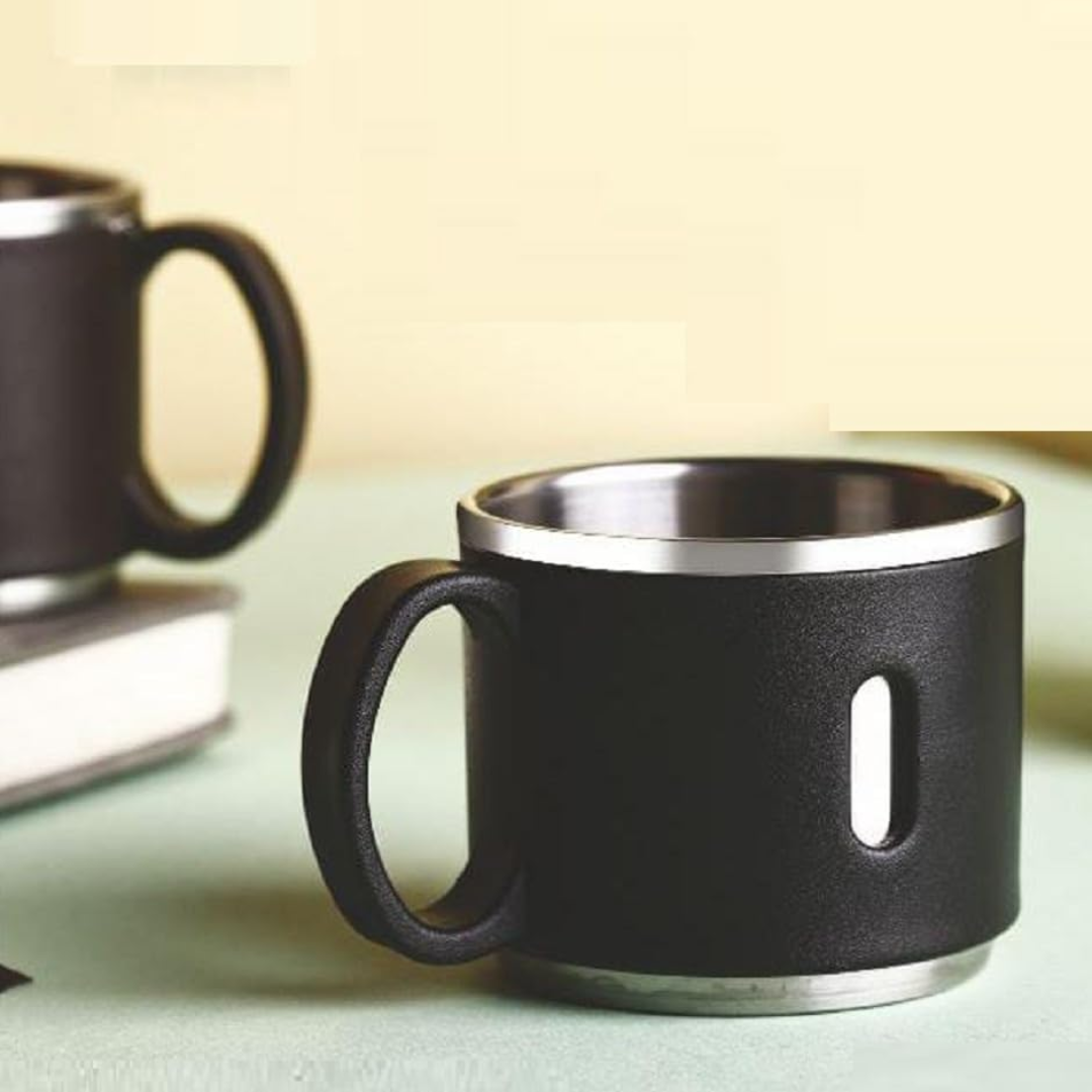 The 150 ml Stainless Steel Desk Mug Set from Vinzesta combines premium craftsmanship with practicality. Its double-wall insulation, stylish design, and ergonomic comfort make it the perfect companion for your home, office, or travel adventures.