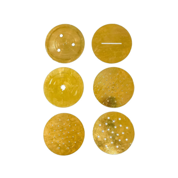 Included: 1 Brass Sev Maker + 6 Jali Discs