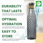 The 1000ml capacity ensures you never run out of hydration whether you’re at the gym, school, office, or traveling. Its slim, ergonomic shape fits easily in refrigerator doors, backpacks, and car cup holders, while the diamond-cut texture adds a refined aesthetic that also enhances grip and prevents slipping.