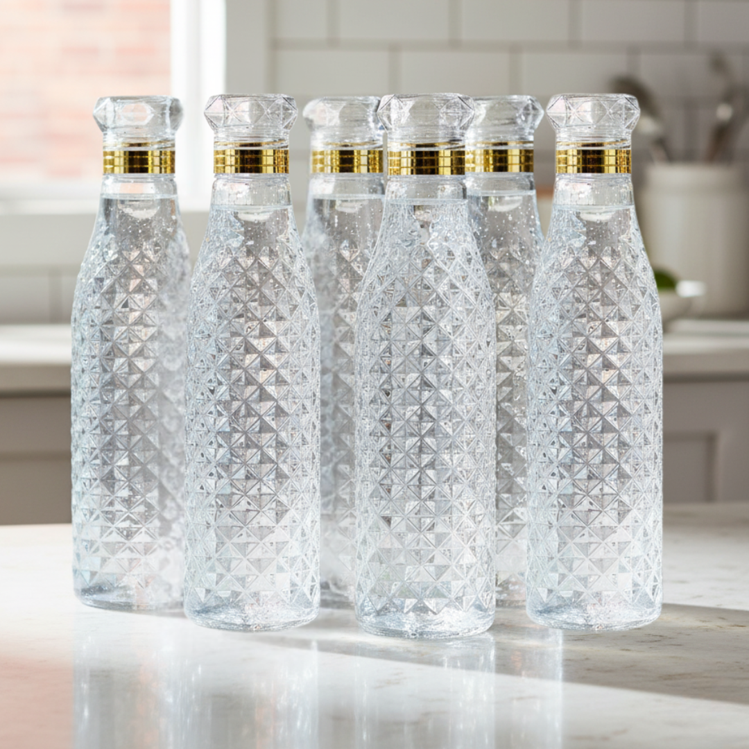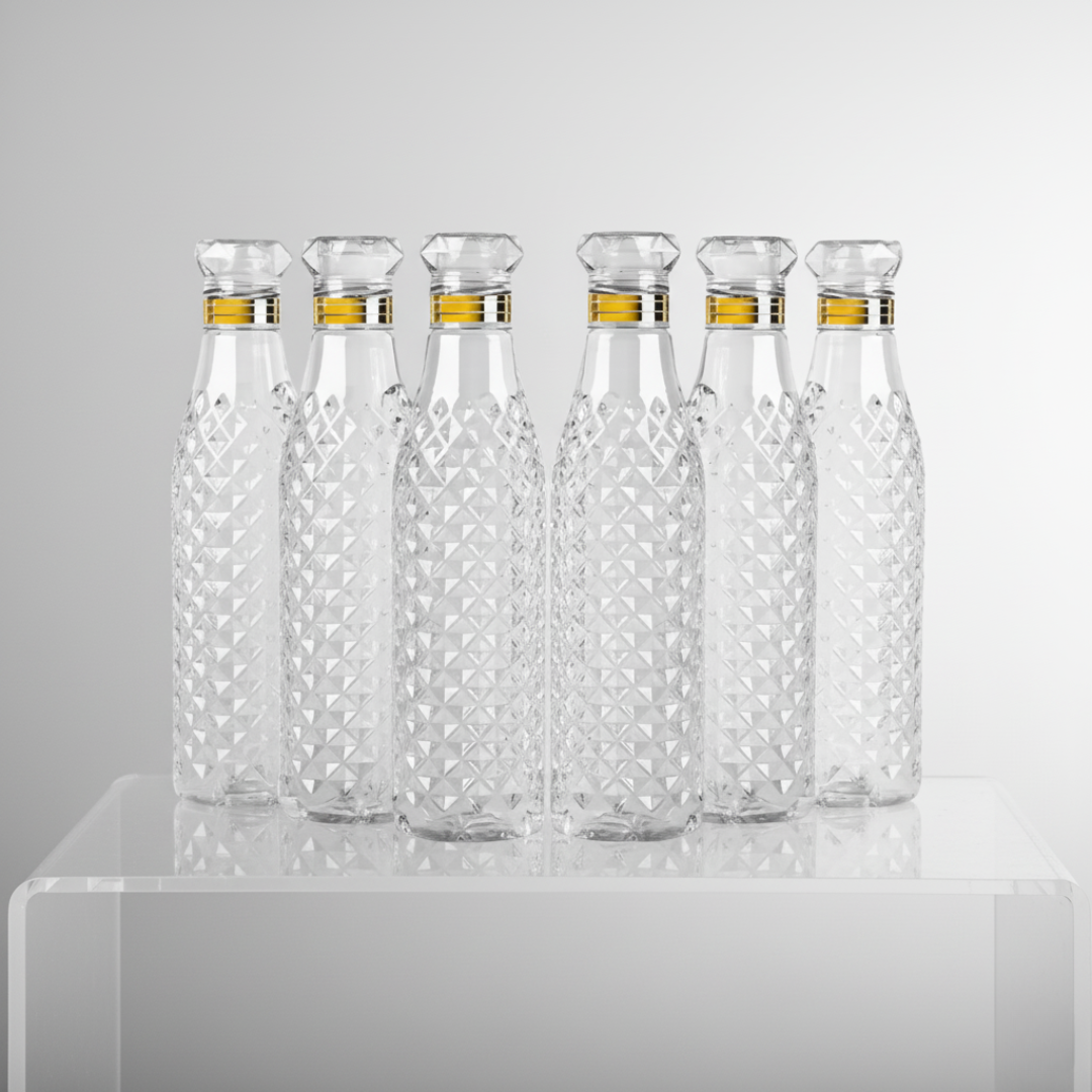 Crafted from high-quality, BPA-free PET plastic, the bottles are completely safe for everyday use and built to last. Their lightweight design makes them ideal for home, office, gym, picnics, or travel. The leak-proof screw cap ensures no spills, while the crystal-inspired pattern adds visual appeal to any table setting or refrigerator shelf.