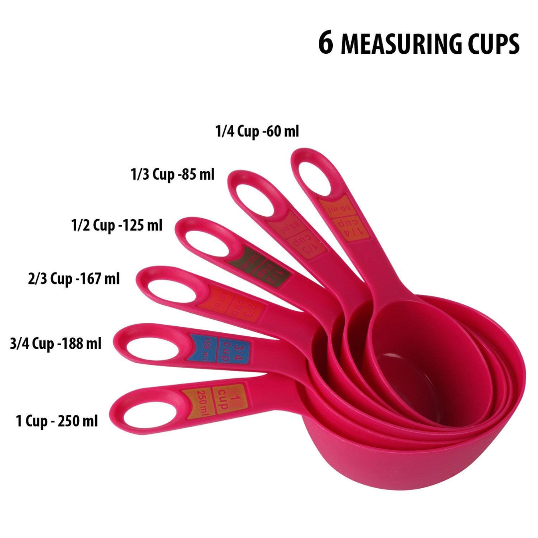 The Plastic Measuring Cups and Spoon Set (12-Piece, Pink) makes cooking precise and fun. With durable build quality, clear markings, and a handy ring holder, it’s a practical kitchen essential that blends accuracy with aesthetic appeal.