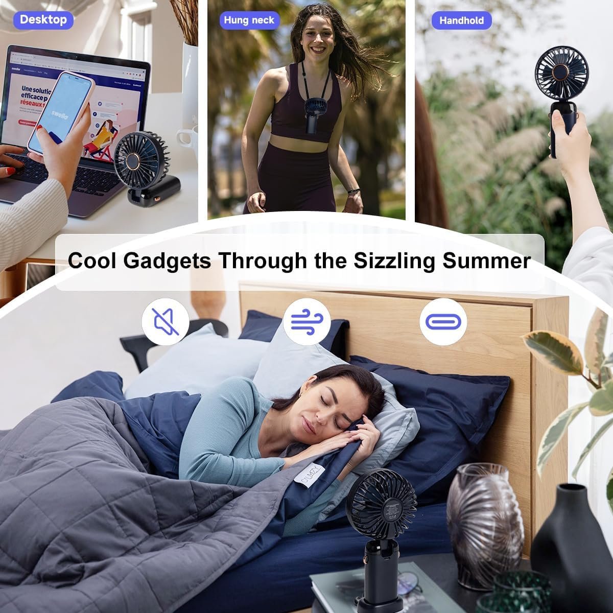 Although compact in size, this portable fan delivers strong airflow using a high-performance motor. At the same time, it operates with low noise, making it ideal for bedrooms, libraries, study areas, and workspaces.