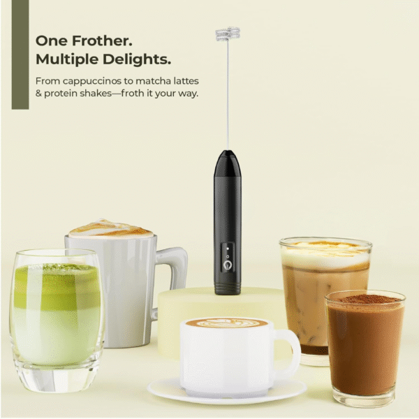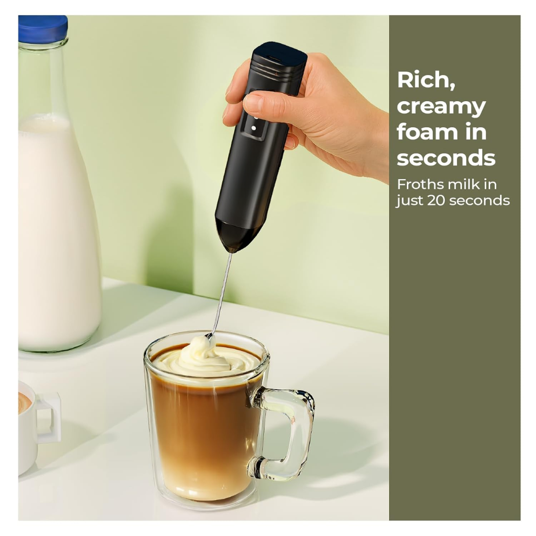Enjoy café-style beverages at home with the Vinzesta Rechargeable Milk Frother, designed to create rich, creamy foam in seconds. With a powerful motor and a double stainless steel whisk, this handheld frother produces smooth, dense froth perfect for lattes, cappuccinos, cold coffee, hot chocolate, matcha, and more.