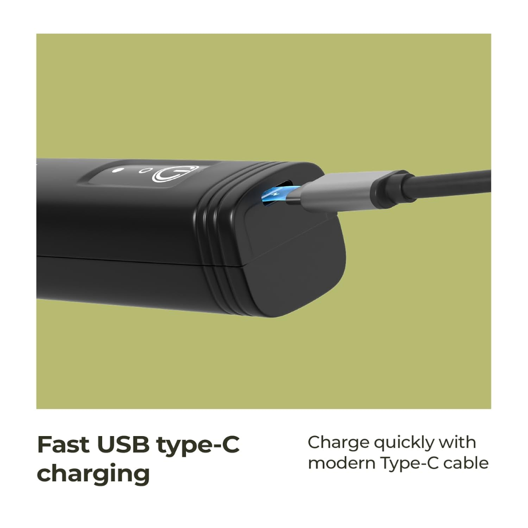 USB-C rechargeable (500mAh battery)