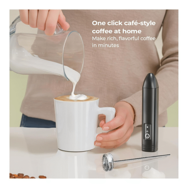 Designed for comfort and ease, this frother features a lightweight, ergonomic body and one-touch operation, making it suitable for everyday use. Its compact size makes it easy to store or carry, whether in your kitchen, office, or travel bag. Cleaning is just as simple—detach the whisk and rinse with water for instant maintenance.