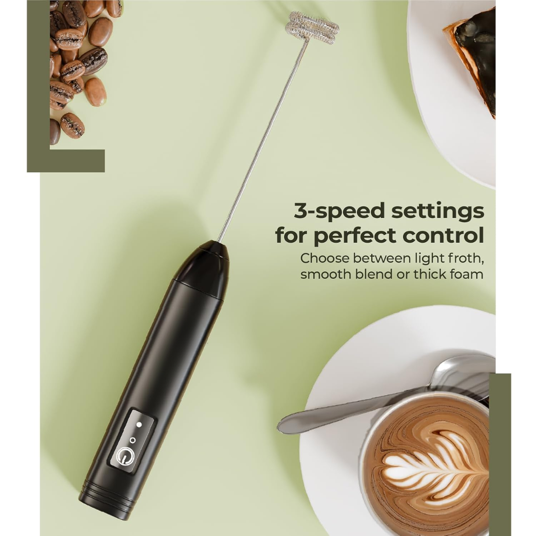The frother includes **three speed settings—low, medium, and high—**so you can easily control the texture. Whether you want gentle mixing for protein shakes or dense foam for cappuccino, the adjustable speeds allow precise customization.