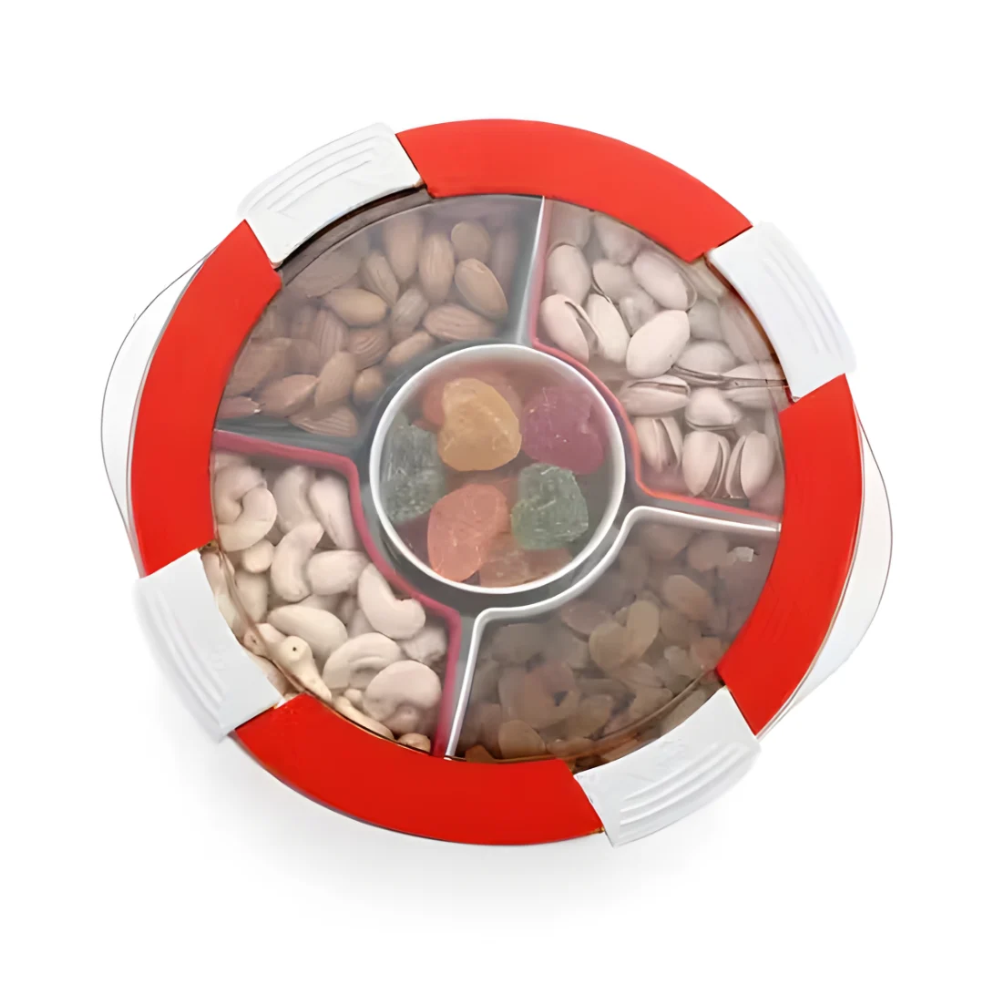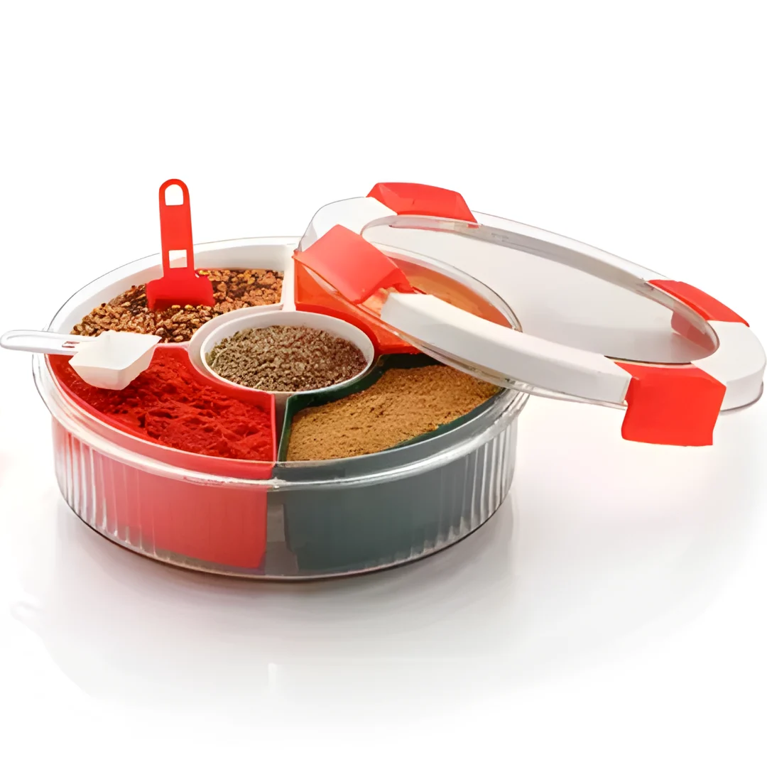Round Spice Box with 5 Sections and Transparent Lid – Red