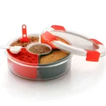 Keep your kitchen neat and organized with this round spice box, designed to store multiple spices in one convenient container. Because of its smart sectional layout, it allows you to separate and arrange essential ingredients while keeping them easily accessible during cooking.
