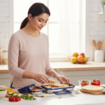 Designed in a modern navy blue exterior, it not only performs but also looks great on any table or lunch desk.