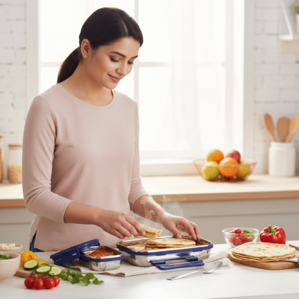 Upgrade your lunch routine with this Stainless Steel Airtight Tiffin Box, designed with both style and functionality in mind. With a total capacity of 1100 ml, this lunch box features two compartments – one large and one mini container – making it ideal for carrying a complete meal with chapatis, rice, vegetables, or semi-liquid items like gravies and curries.