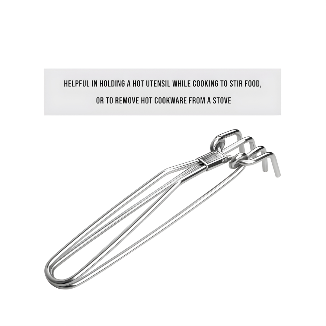 • 22 cm stainless steel wire tong for lifting hot utensils safely.