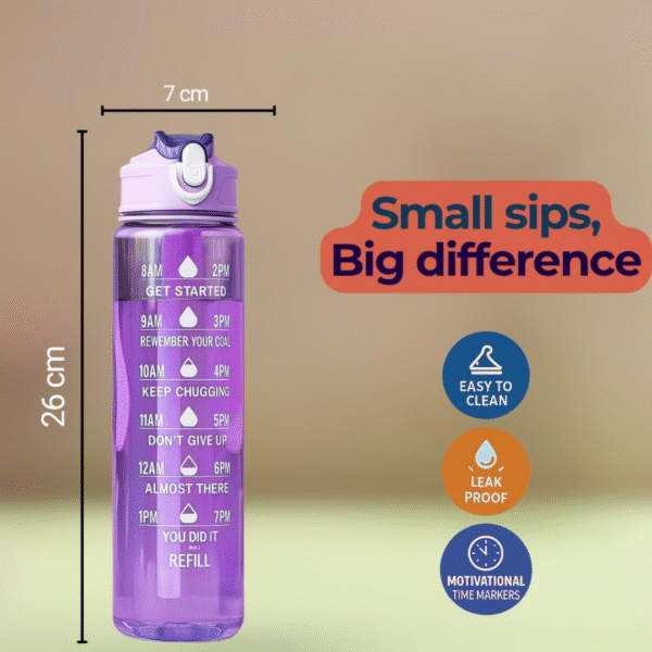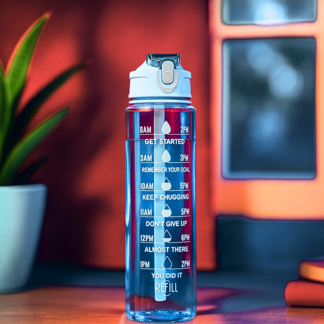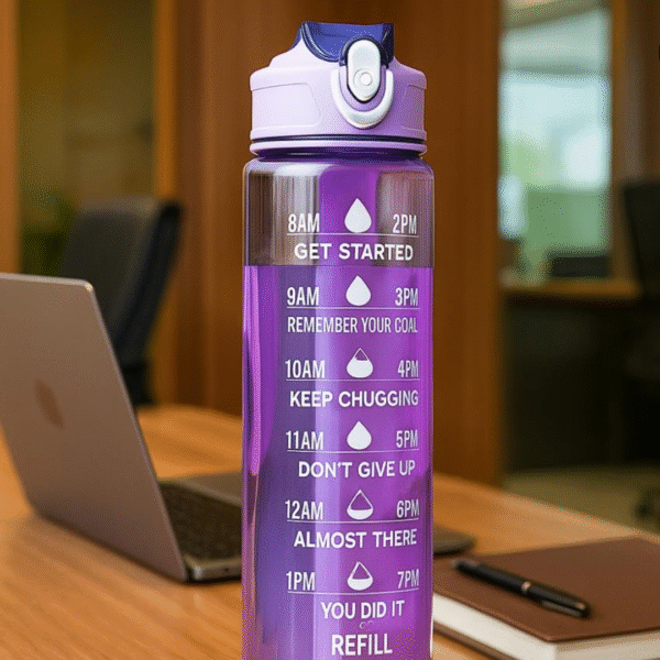 Stay motivated and hydrated throughout the day with the Vinzesta Transparent Motivational Water Bottle, designed for those who want a stylish yet practical hydration companion. With a generous 950ml capacity, this bottle helps you track your water intake effortlessly. Because it includes time markers and motivational reminders, you stay encouraged to drink consistently, whether you’re at work, in the gym, or on the move.