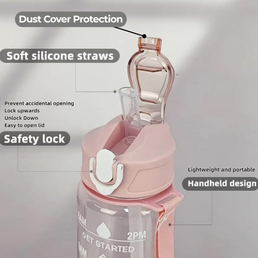 Thanks to the built-in straw, sipping becomes smoother and quicker—perfect for workouts, driving, or busy office hours. The leakproof flip-top lid and tight sealing system ensure your bag stays safe from spills, making this bottle a reliable travel partner for daily commutes or outdoor activities.